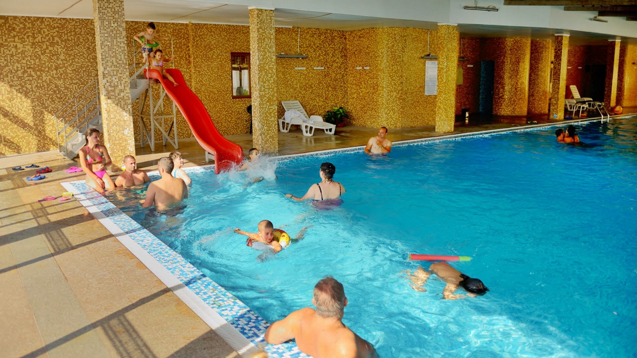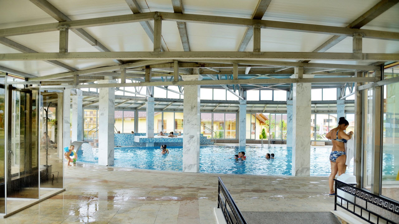 - Големи вътрешни басейни с топла минерална вода