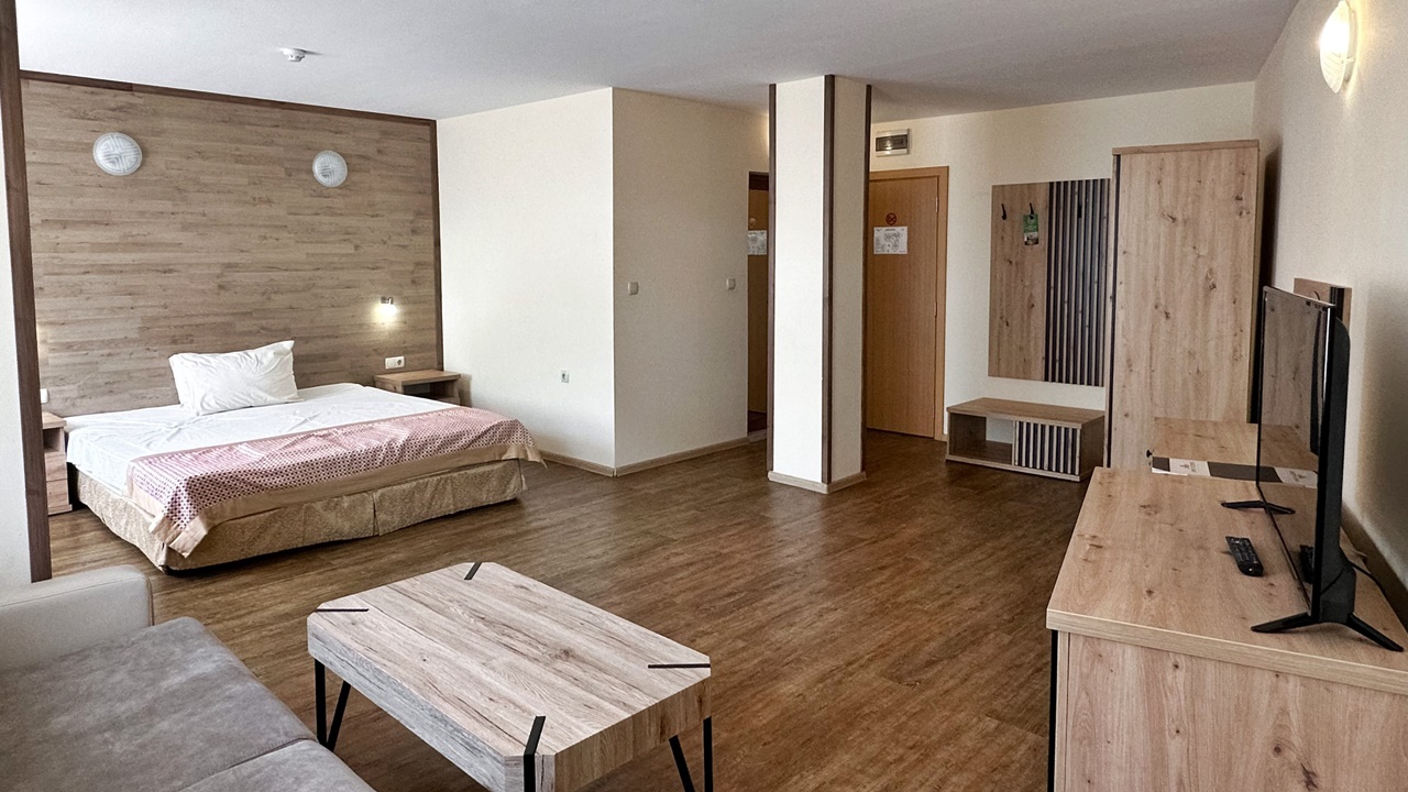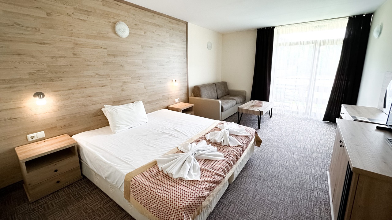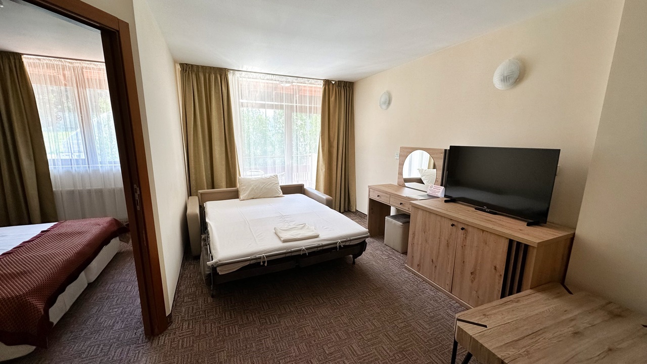 - Допълнителното легло във фамилна стая, студио и едноспален апартамент е разтегателен диван, а в двойна стая – фотьойл.