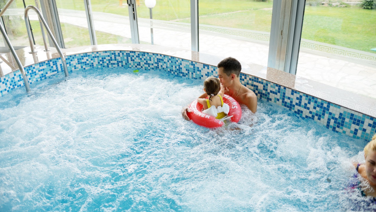 - Два вътрешни минерални басейна (31° - 35°C)