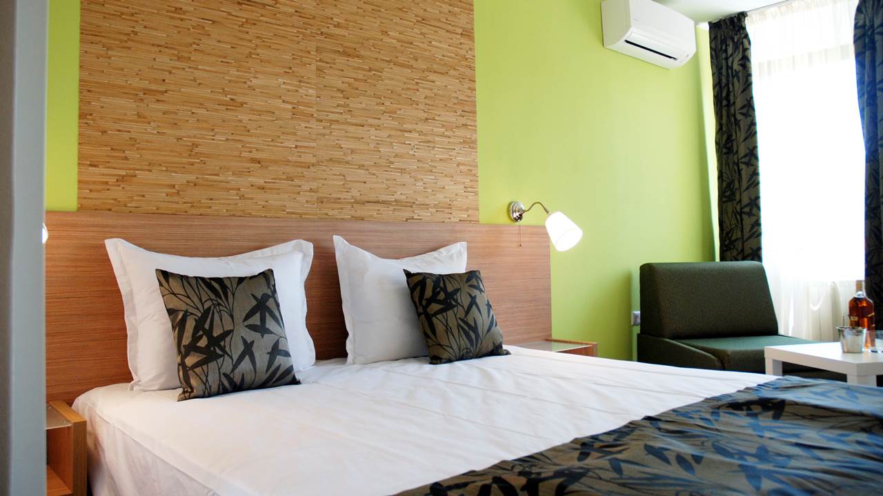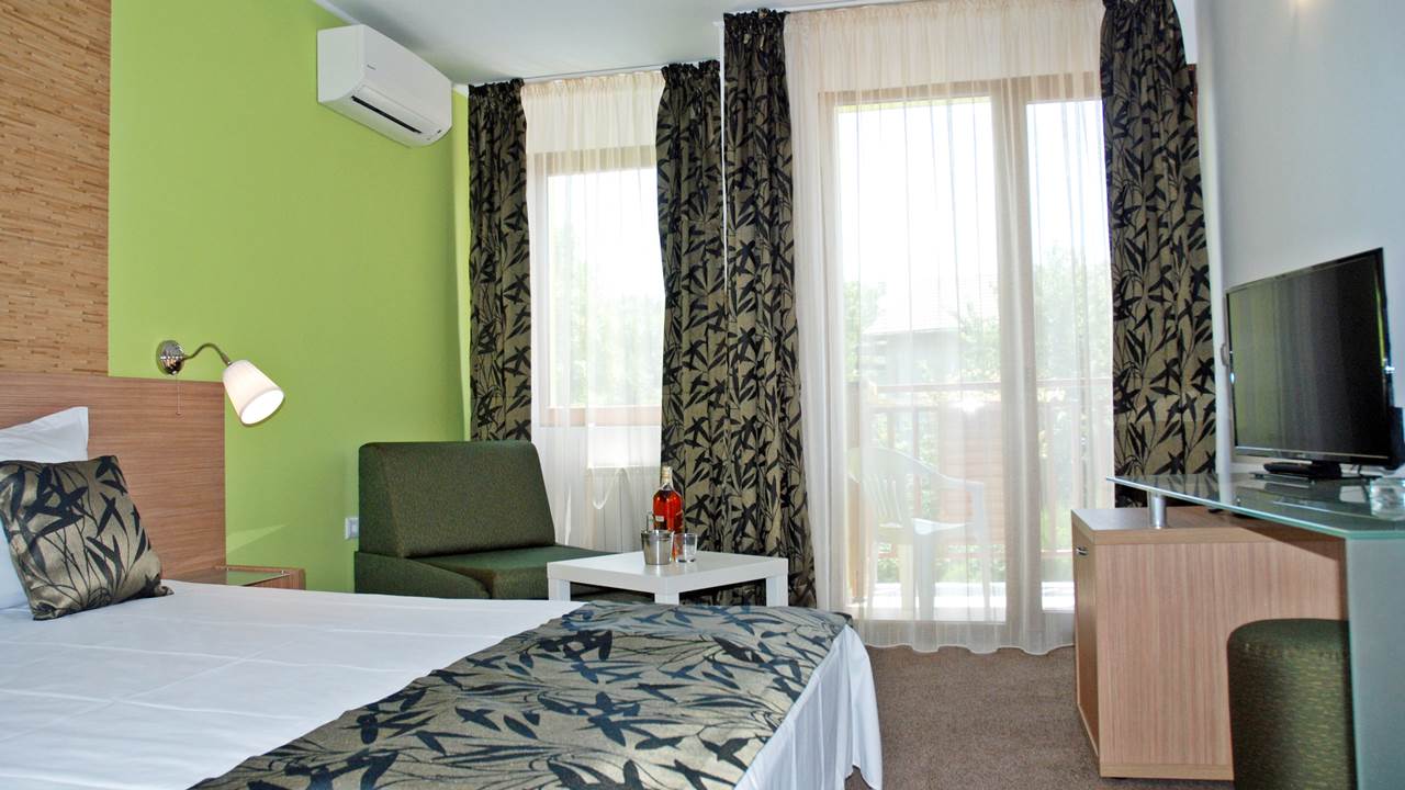 - Апартаментите състоят от 2 помещения: спалня и хол с разтегаем диван, свързани с антре, от което се влиза в общата баня