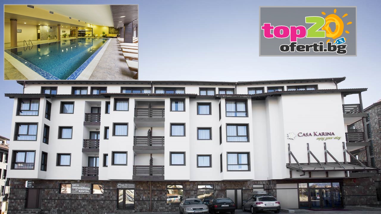 Хотел Каза Карина- Банско се намира в един от най-красивите и модерни ски курорти - Банско. В непосредствена близост е до началната станция на кабинковия лифт (300 метра) и 20 минути разходка до центъра на града. Хотелът разполага с две сгради обединени с топла връзка където е разположена рецепцията. На своите гости хотела предлага луксозен ресторант, басейн, СПА център, забавен детски кът.