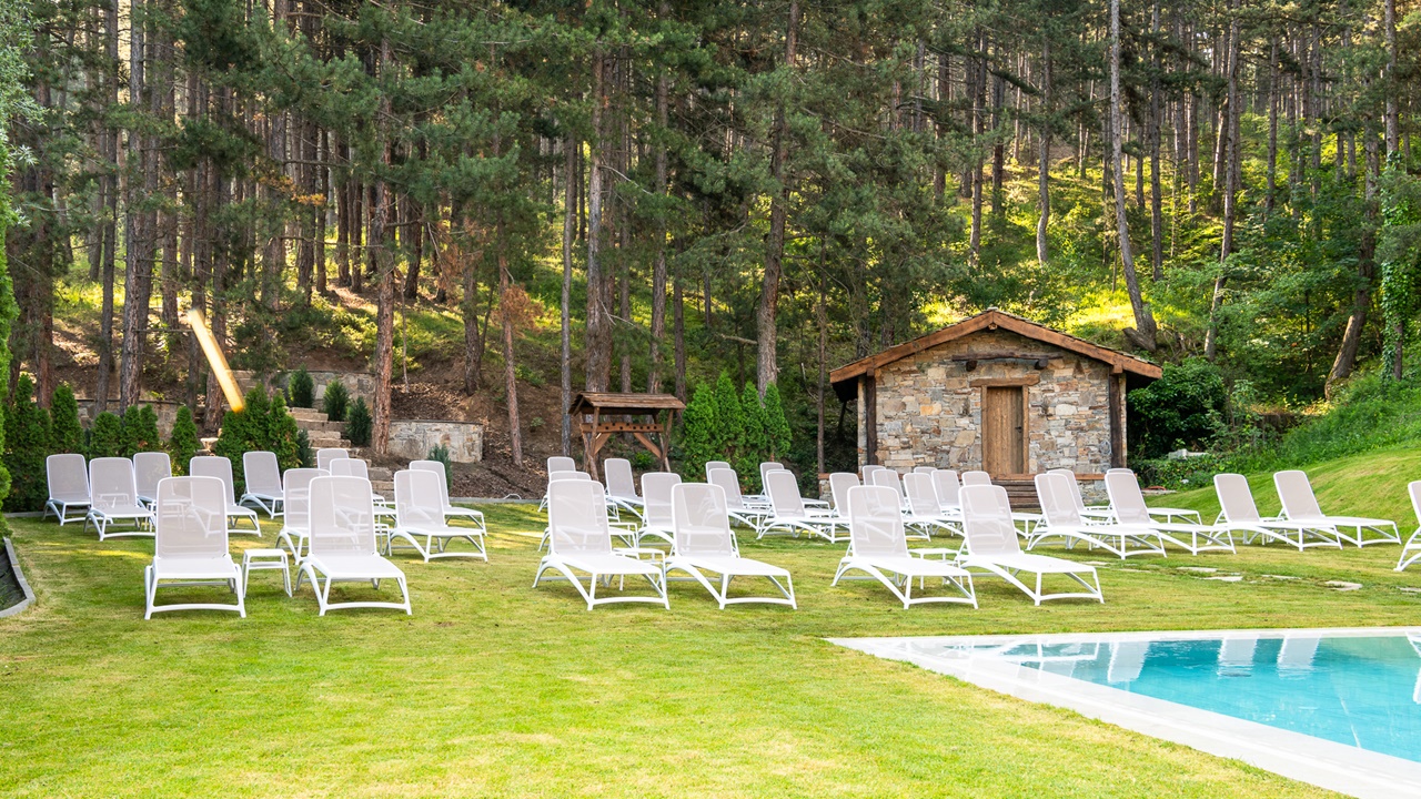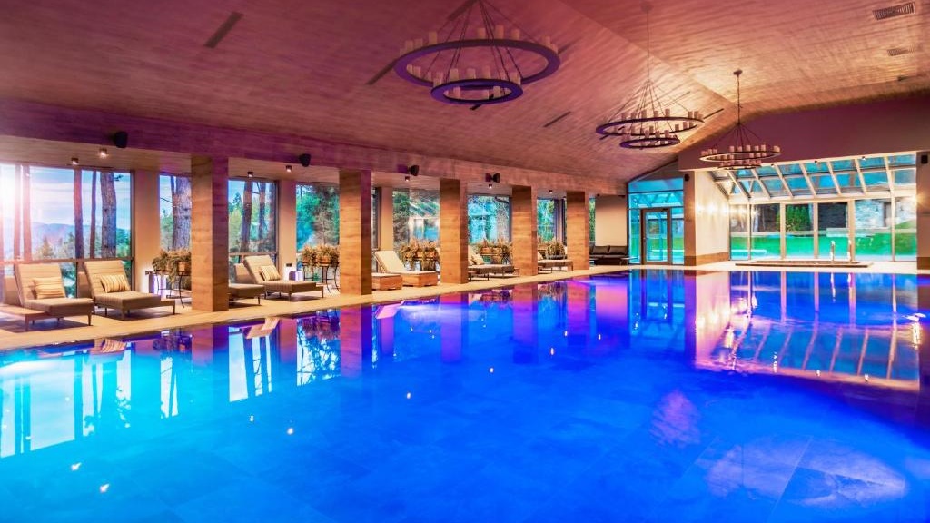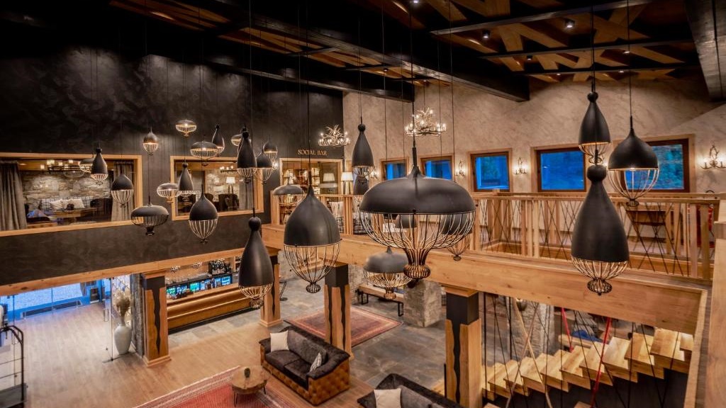 • Ресторант "Pashmina" с капацитет 220 вътрешни и 120 външни места, разположени на панорамна тераса с гледка към езерото Клептуза. Ресторантът на комплекса ще Ви очарова с алпийска атмосфера, заложила на естествените материали, пастелни цветове и уютни светлини.
