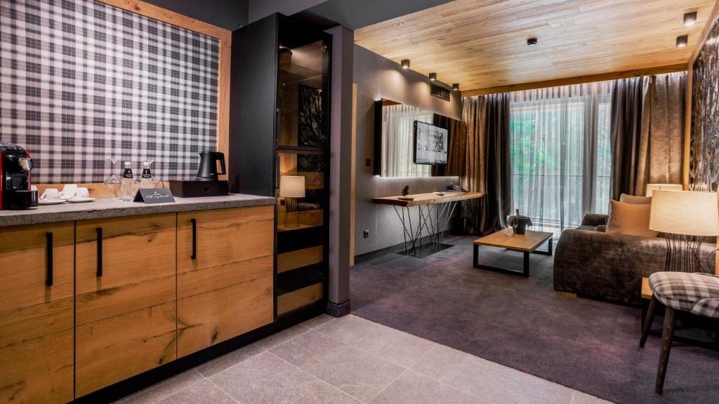 • всички помещения разполагат с балкон, богато зареден мини-бар, кафе машина, термокана, висококачествено бельо, климатизация, телевизор, "Rituals” козметика за баня, високоскоростен Wi-Fi, 100% гледка гора, сейф за съхранение, комфортни мебели, луксозни халати и чехли, сешоар, функционална душ кабина