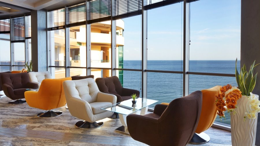 Комплексът е разположен върху площ от 40 000 кв.м. и се състои от няколко сгради, обединени в елегантен ансамбъл. Стилни и уютни, всички стаи и апартаменти разполагат с тераси с прекрасен изглед към морето или към парка. Атракция за гостите са панорамните асансьори, които отвеждат направо на пясъчния плаж. Комплексът предлага 227 стаи и 92 апартамента, които са напълно реновирани и модернизирани. Всички са елегантно и комфортно обзаведени с климатик, телевизор, интернет, директен телефон, сейф и просторни тераси. В банята има душ кабини и сешоар, телефон.