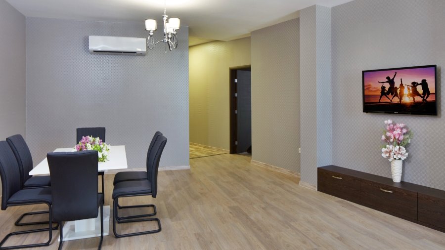 - В апартаментите едната стая е спалня, другата хол (с един разтегателен двоен диван или 2 единични дивана (190/82 см), преходни са, като спалнята е отделена с врата.