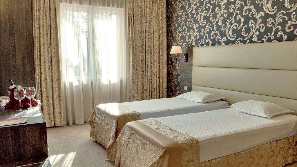 - Двойна стандартна стая - Стаята е с размер 20 кв. м., двойно легло или 2 отделни легла, възможност за допълнително единично легло, телевизор с плосък екран, самостоятелна баня, сейф, сешоар и климатик;
