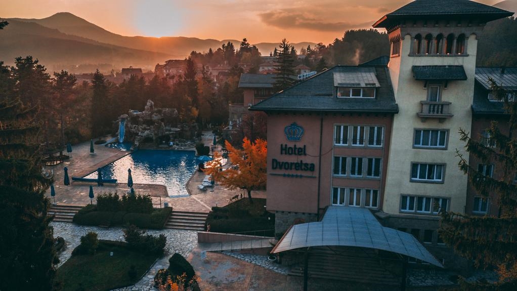 СПА Хотел Двореца, Велинград, e с луксозен 5-звезден хотел, разположени в СПА столицата на Балканите - гр. Велинград. Хотелът разполага с луксозни помещения, минерални басейни, джакузита, лоби бар, ресторант с лятна градина, фитнес, тенис корт, паркинг и други удобства. в СПА Хотел Двореца можете да се насладите на един от малкото целогодишни открити минерални басейни, външен и вътрешен детски кът, както и детски сезонен басейн с аквапарк. Само на около 3 км. от хотела се намира езерото Клептуза - единствения карстов извор на Балканския полуостров.