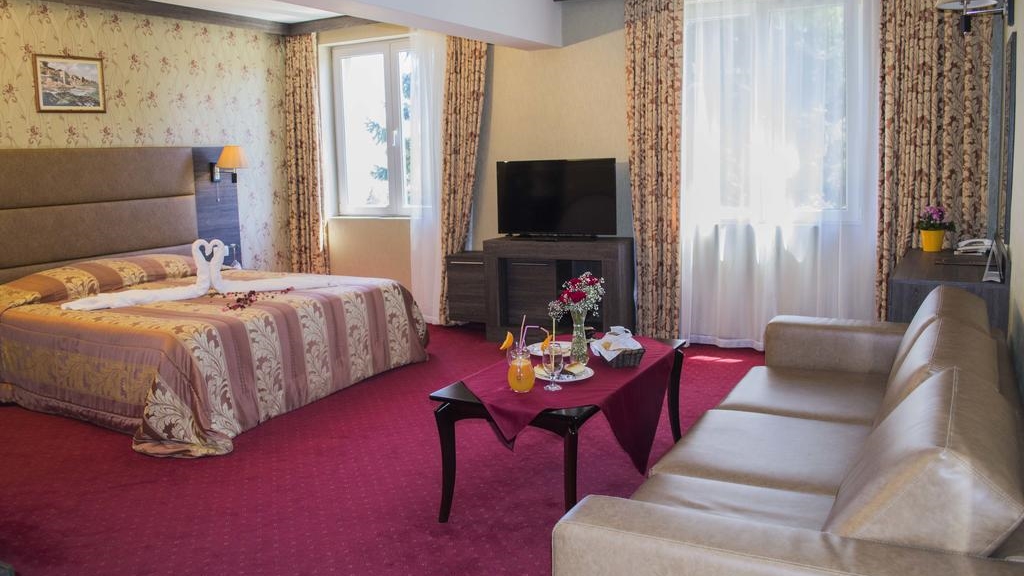 - Двойна стая лукс - Стаята е с размер 36 кв. м., двойно легло и разтегателен диван, телевизор с плосък екран, баня с вана, сешоар и климатик;