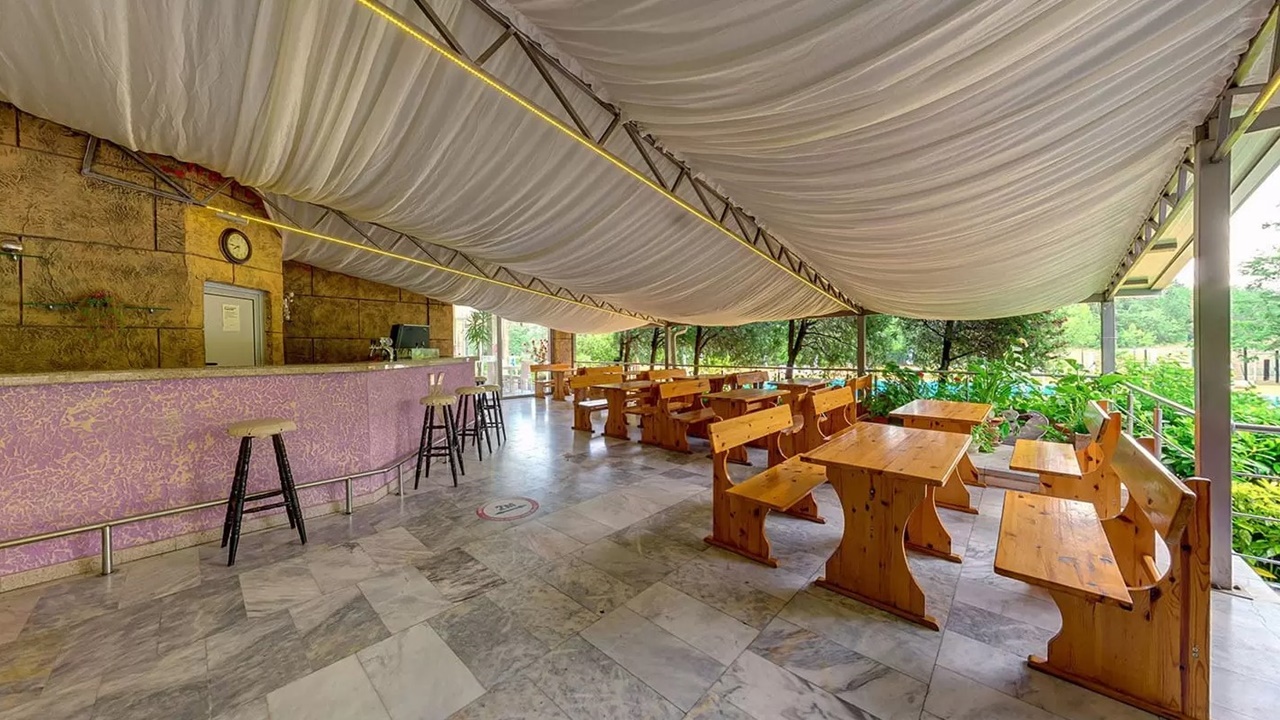 - Напитки - "K"- бар-ресторант - Безалкохолни напитки: чай, кафе, сок, трапезна вода и газирани напитки от машина от 10:00 до 22:00 ч. Алкохолни напитки от 10:00 до 22:00 ч. - българско производство - бира, вино, водка, джин, бренди, уиски, ракия, мента, мастика
