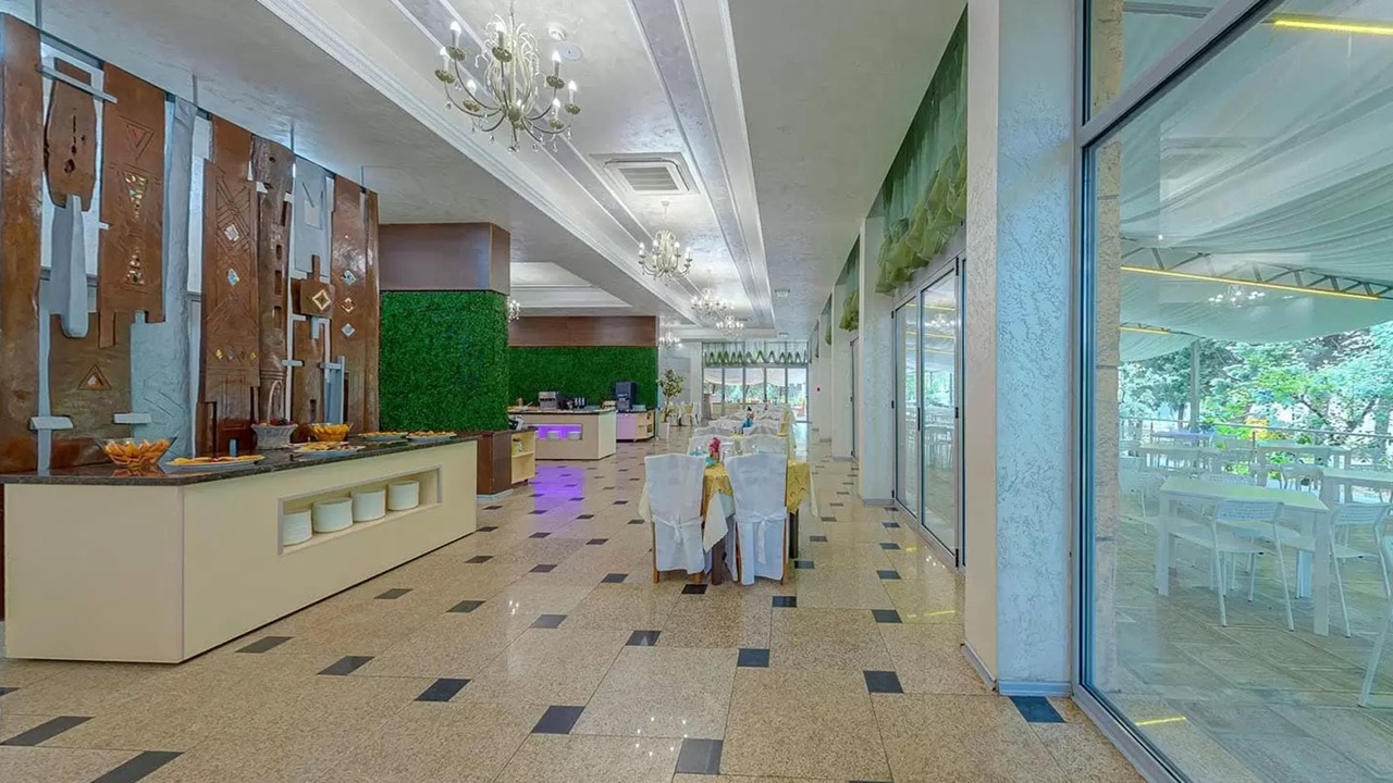 Програма All Inclusive:- Закуска - 08:00 - 10:00 ч. /разнообразие от колбаси, млечни изделия, плодове /сезонни/, зеленчуци /сезонни/, тестени изделия, макаронени изделия и др, чай, кафе, сок, трапезна вода и газирани напитки от машина