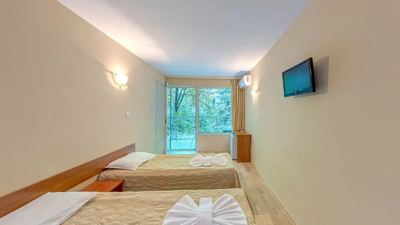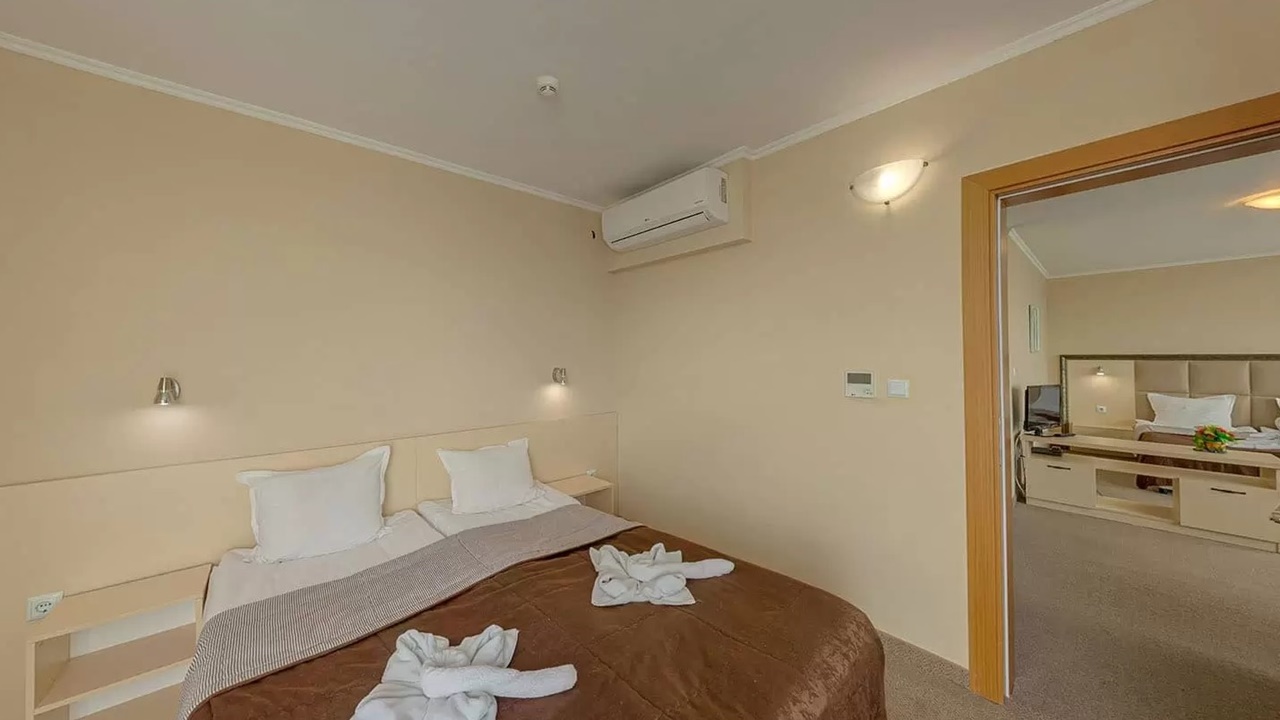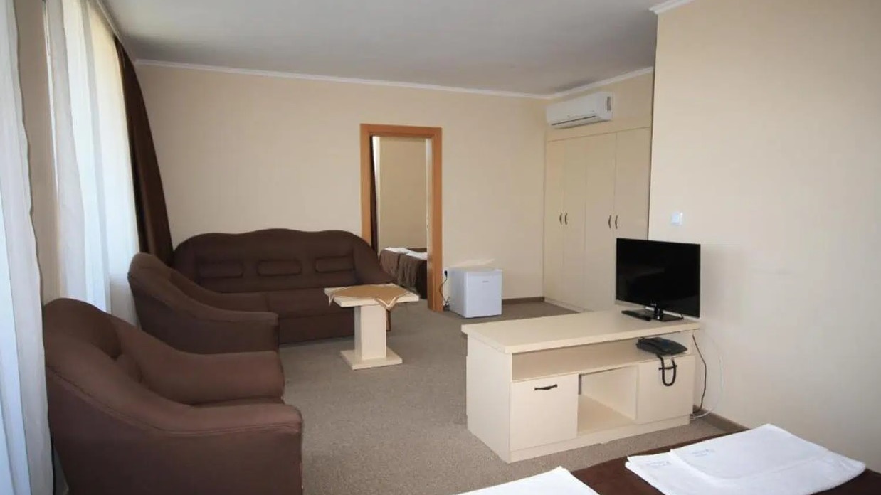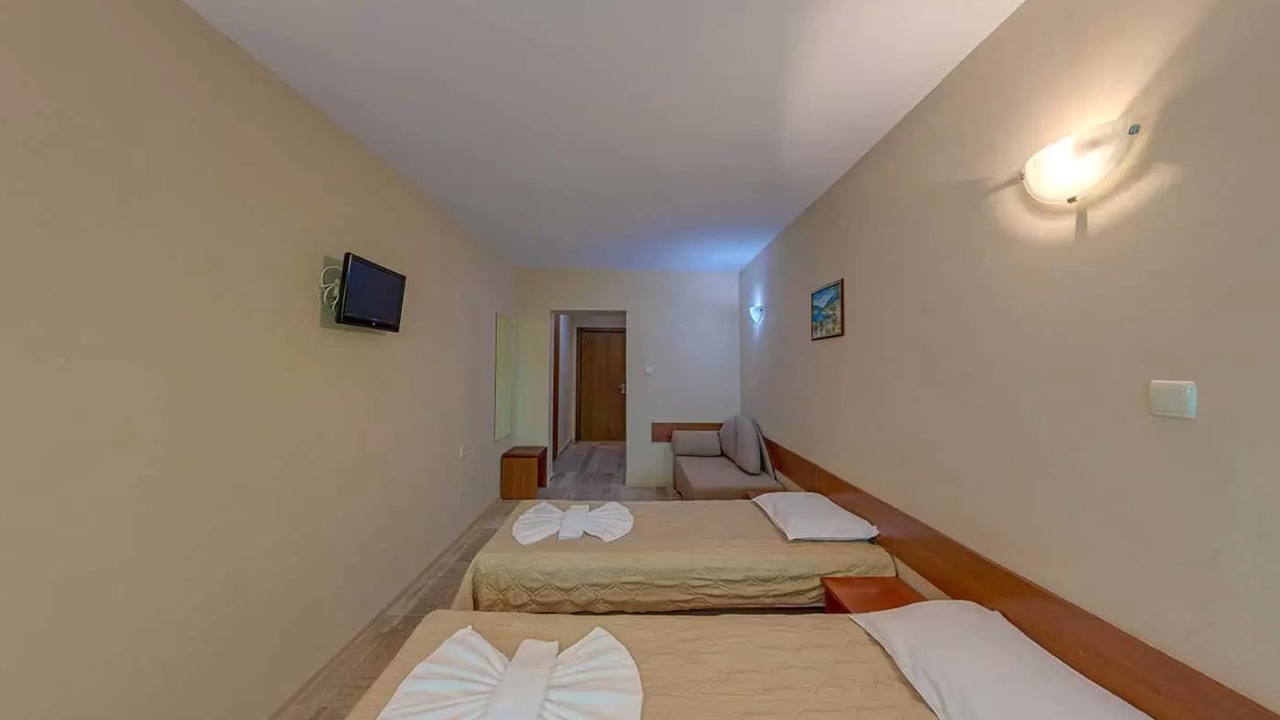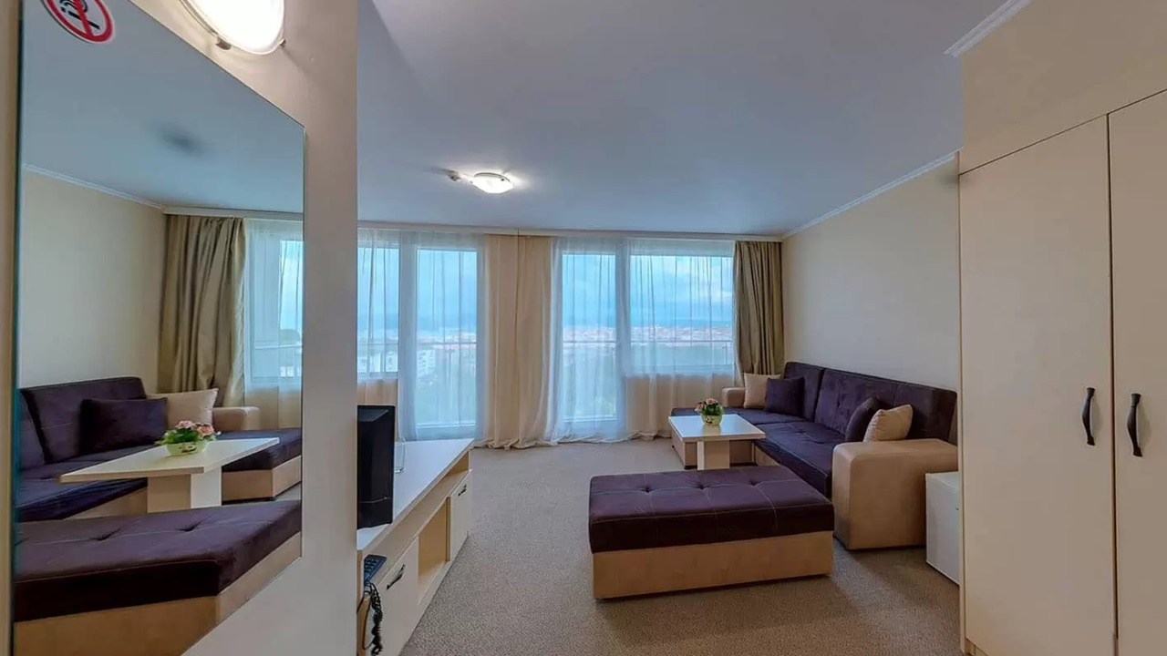 - апартамент - Апартаментите са с площ около 40 кв.м., като се състоят от две помещения, разделени с врата - едното помещение е обзаведено със спалня + дневен кът с мека мебел (разтегателен диван) и отделно обособена втора спалня