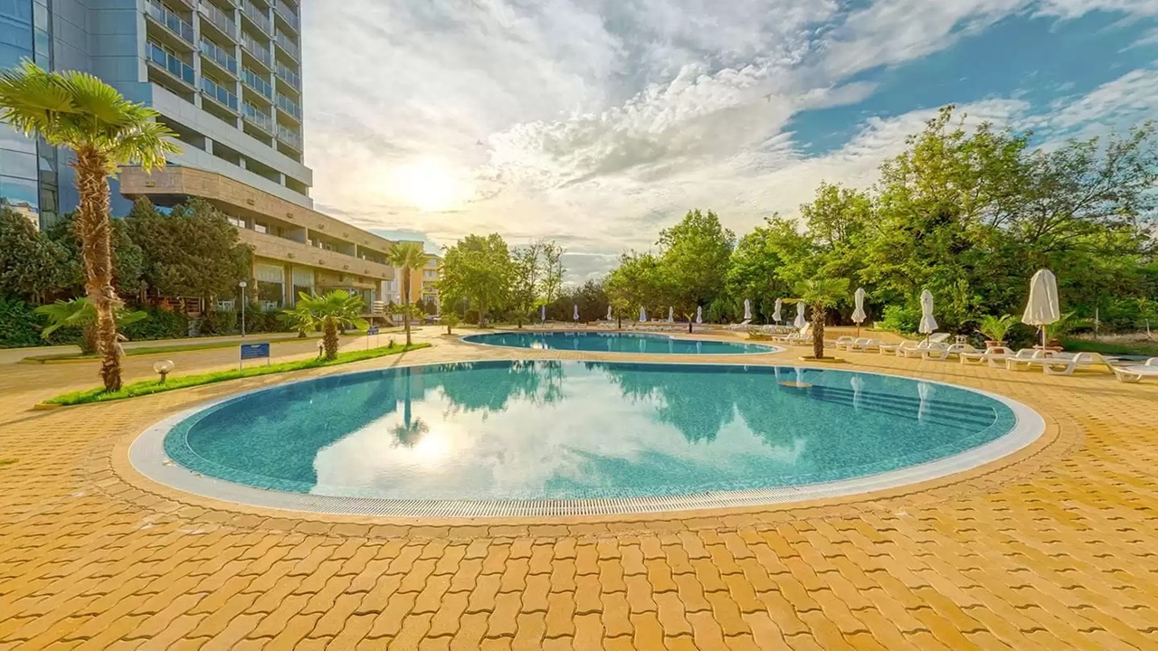 - Шезлонг и чадър край басейните (при наличие на свободни)