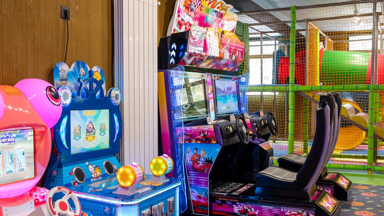 Детски кът, игрална зала с аркадни игри, външна детска площадка, детска анимация
