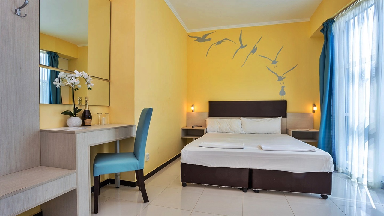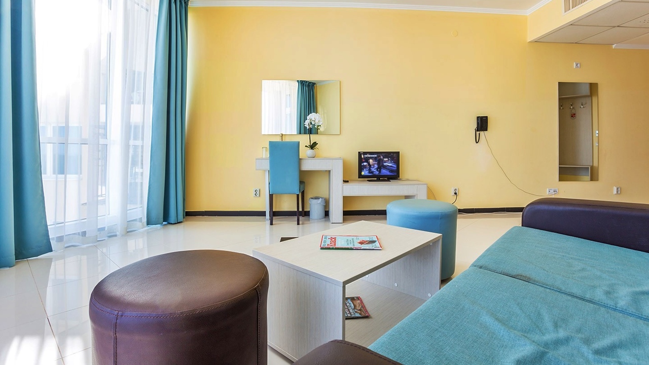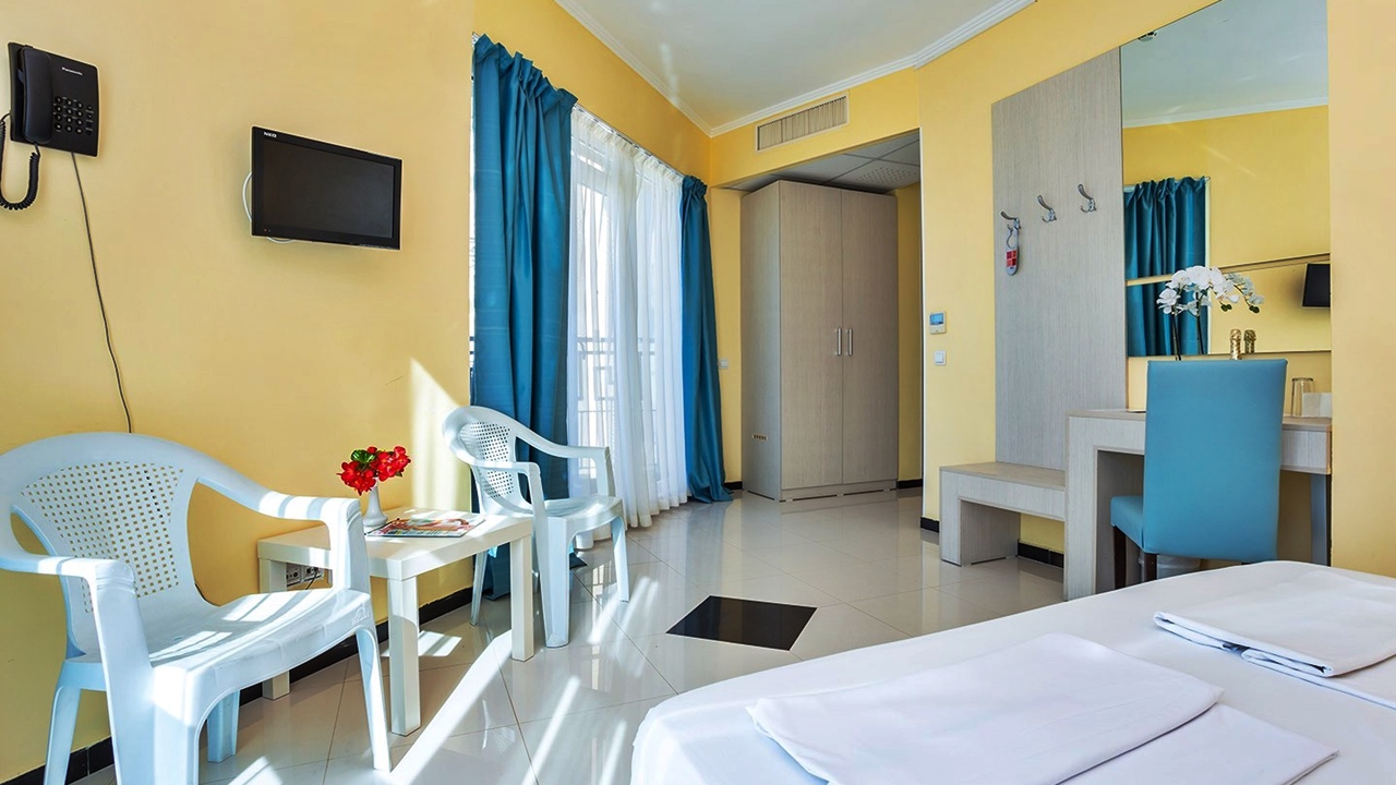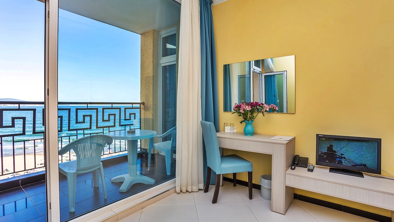 - апартамент с 1 спалня - разполагат със спалня или две единични легла, разтегателен диван, индивидуално контролиран климатик, хладилник, интернет и кът за сядане с телевизор допълват условията за приятна почивка. Банята разполага с душ, сешоар, кърпи и луксозни тоалетни принадлежности. Апартаментите разполагат с балкони с частичен или фронтален изглед море.