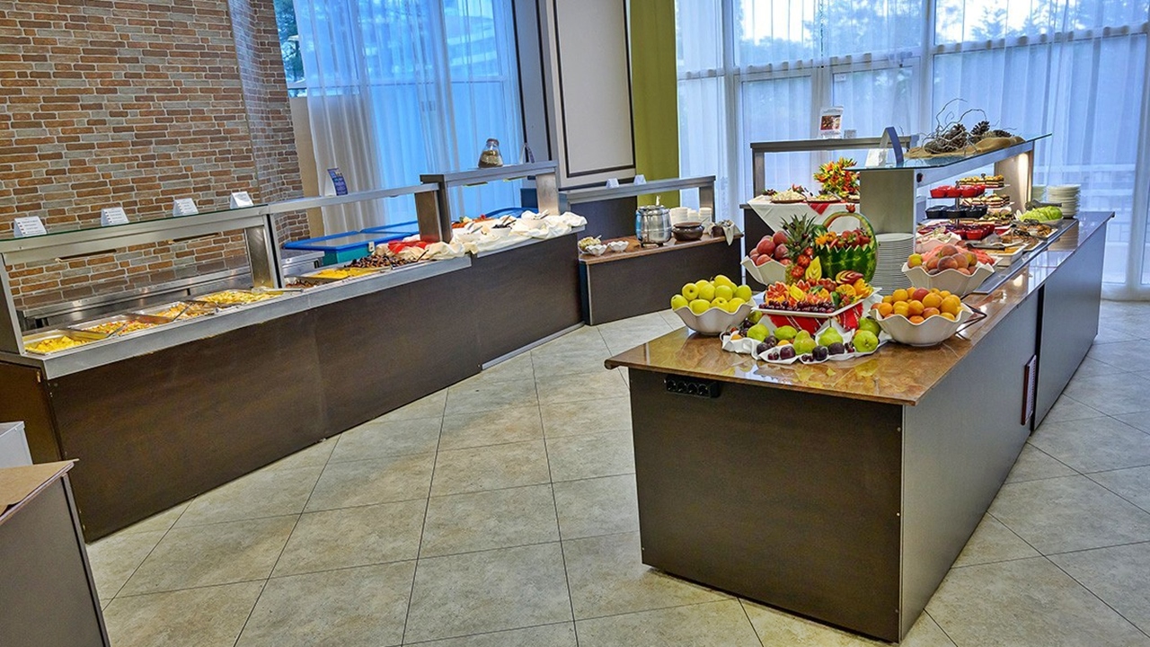 - Закуска 07:30 - 10:00 - шведска маса, включва топли напитки, безалкохолни напитки, вода и сокове.