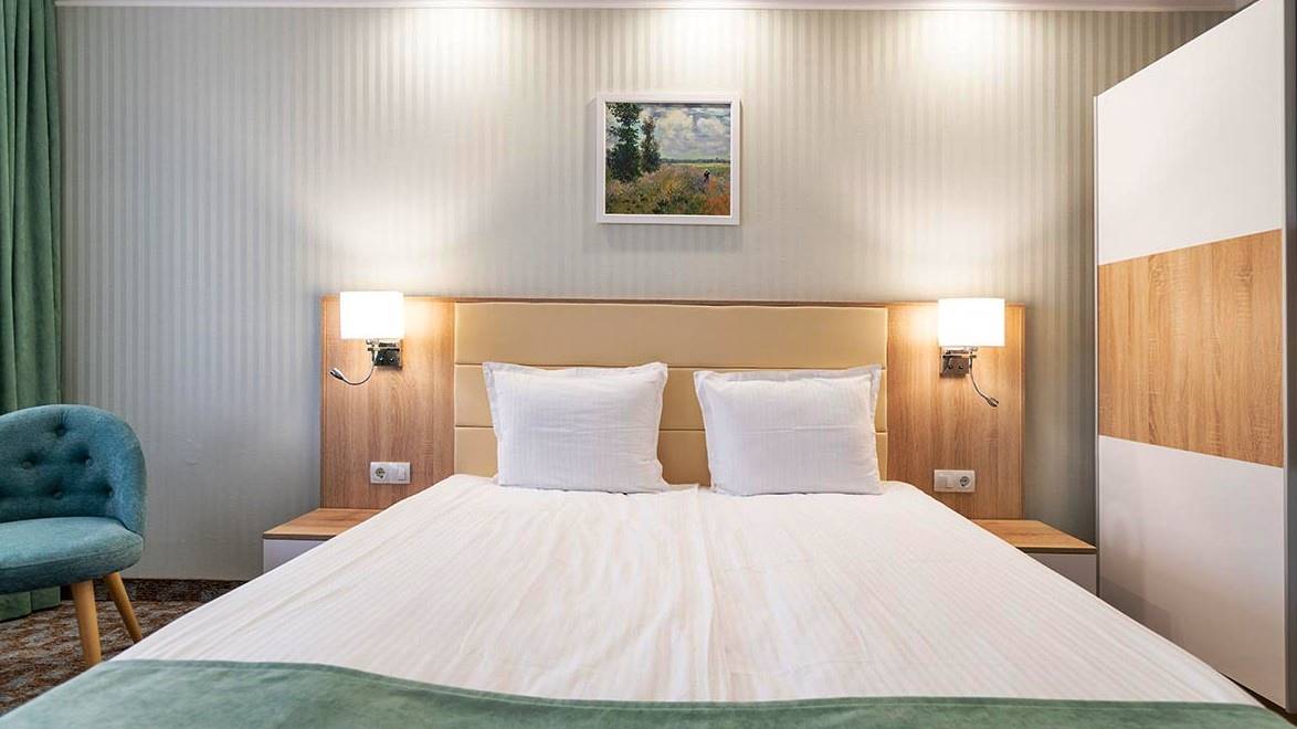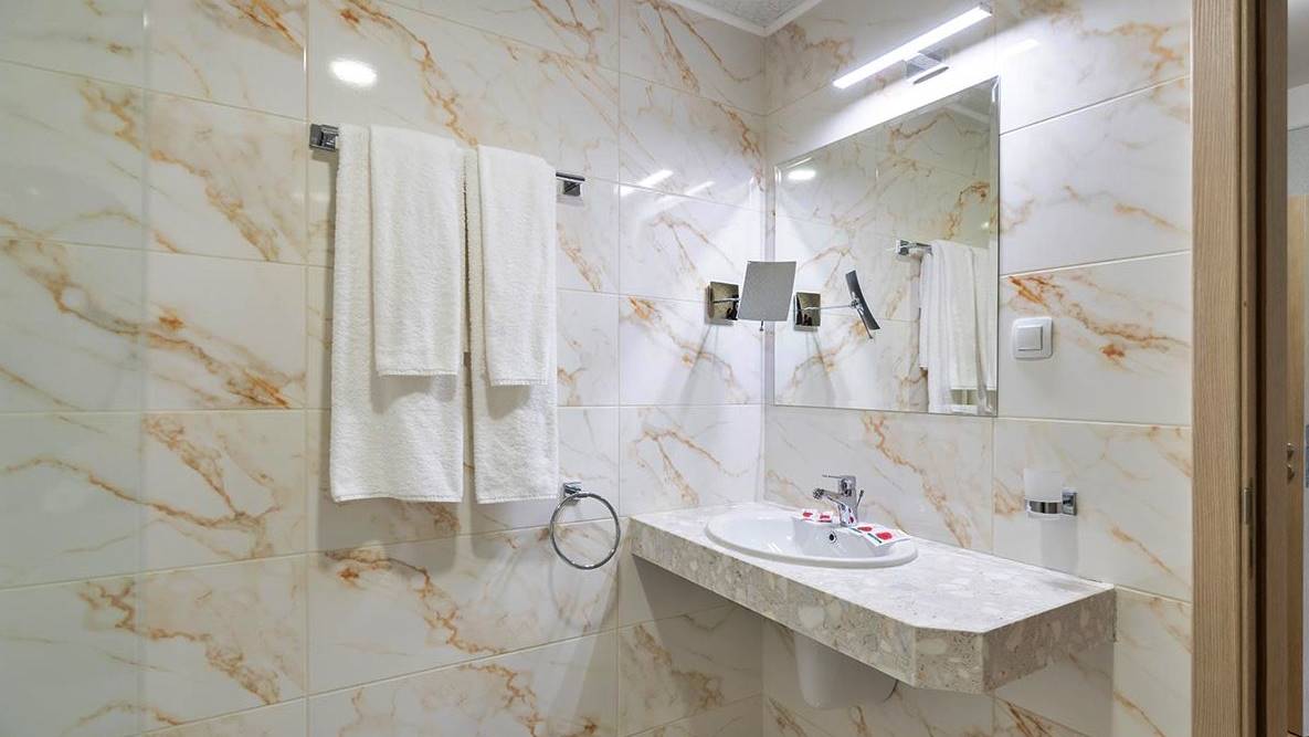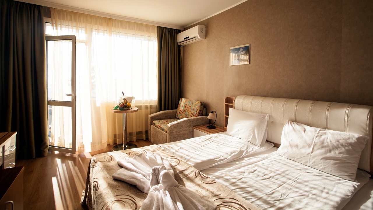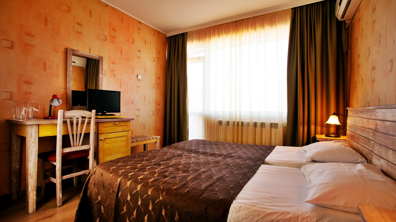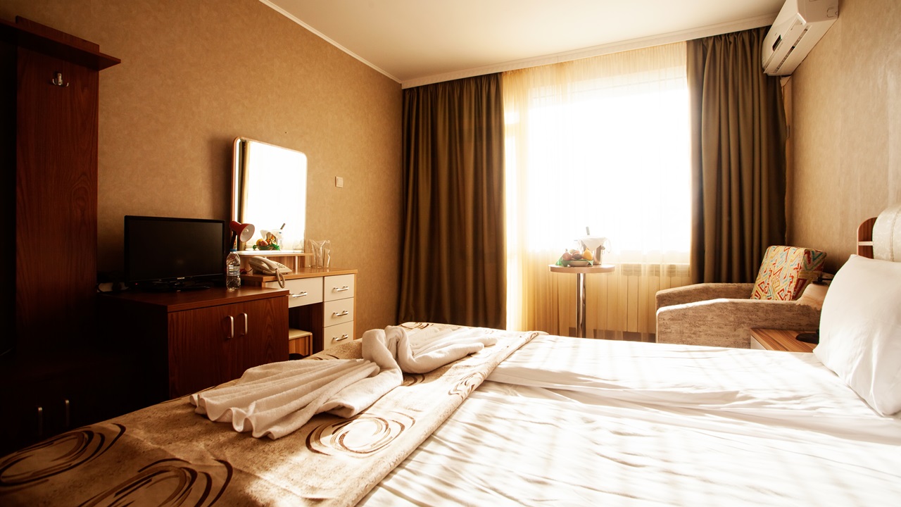 - Всяка от стаите е захранена с топла минерална вода и е оборудвана с кабелна телевизия, интернет, Wi-Fi, климатик, телефон, паник шнур, почти всички стаи са с балкони (само няколко от тях нямат)