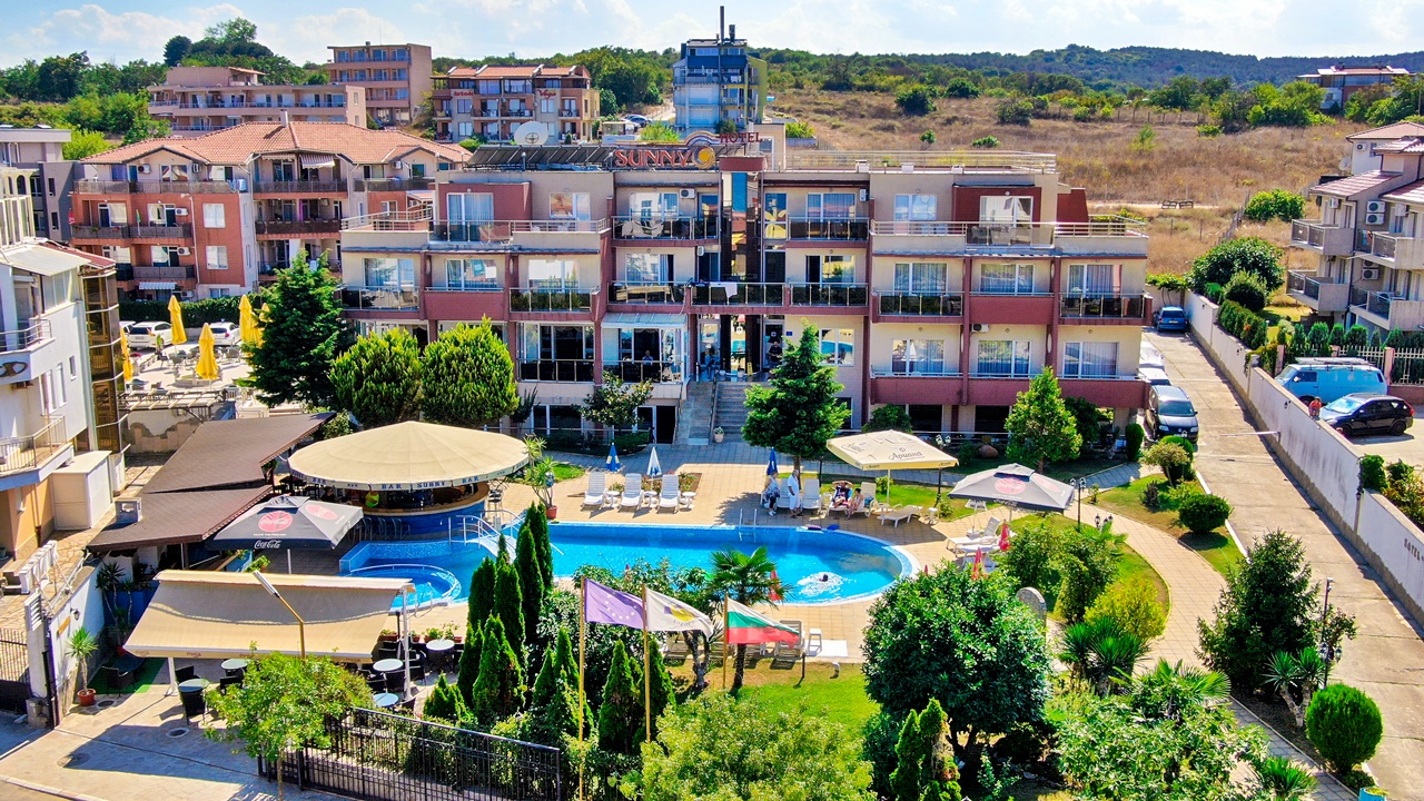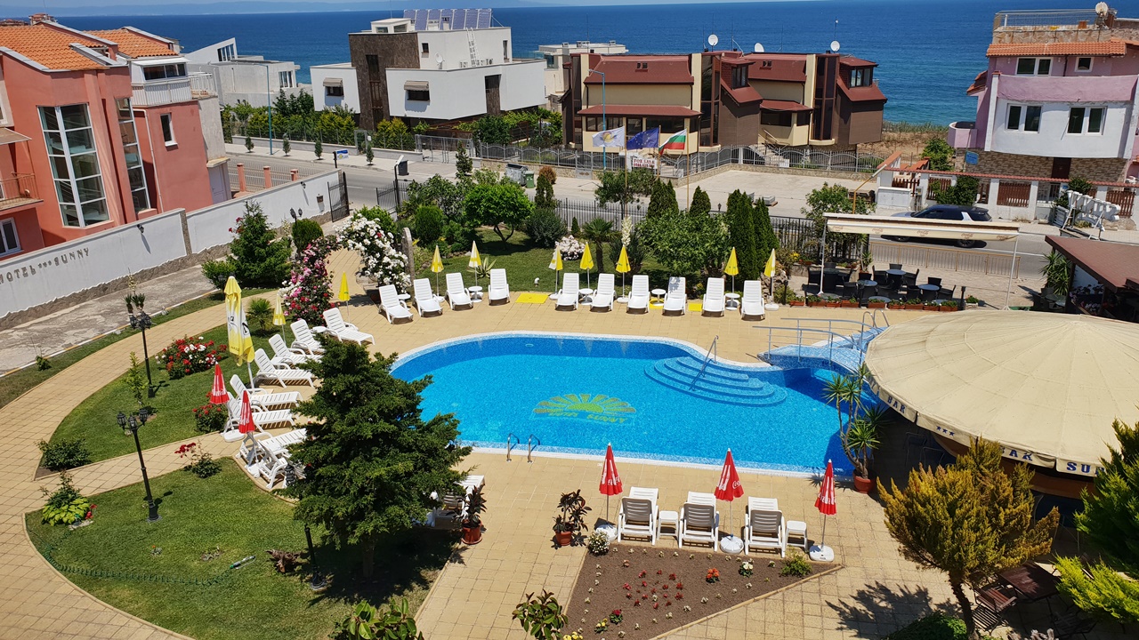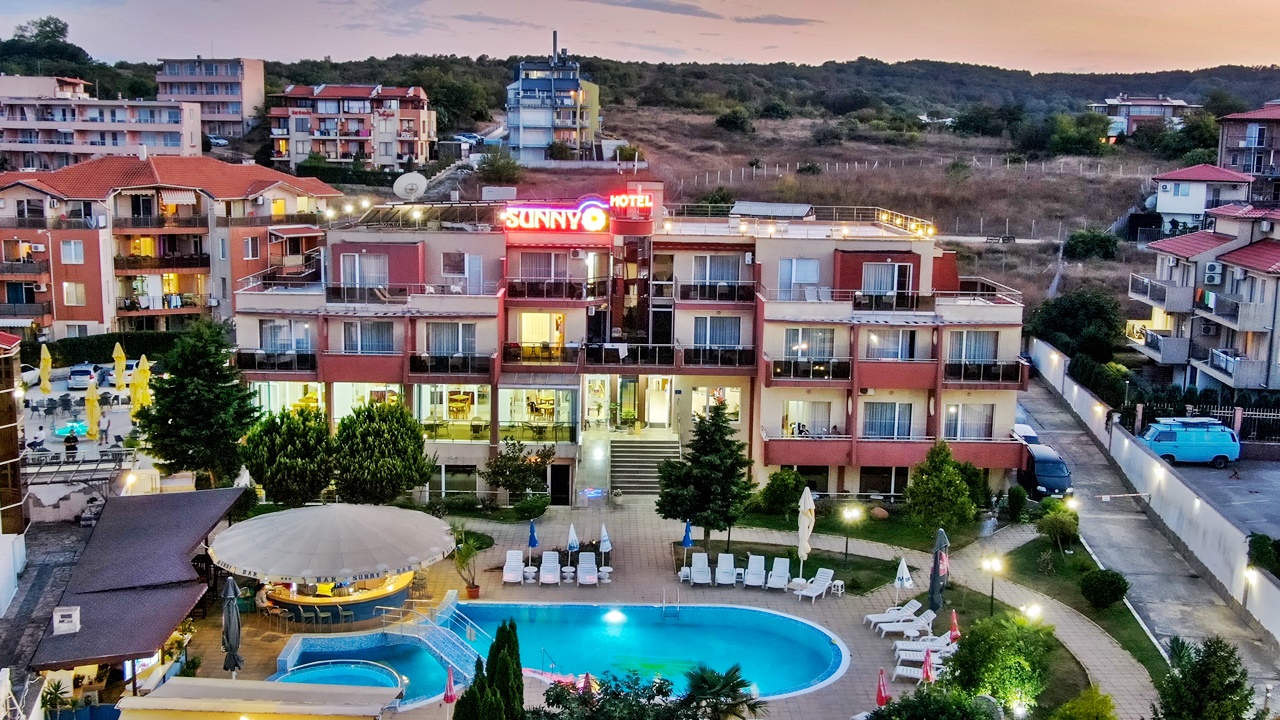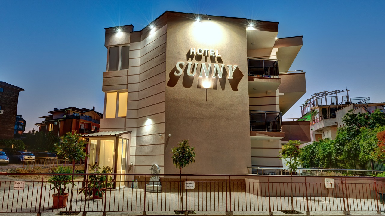 Хотел Съни, Созопол, е разположен само на 50 метра от плажната ивица и в непосредствена близост до централната търговска улиц на Новия град в Созопол. Хотелът предлага просторни, уютни и напълно оборудвани помещения, подходящи за една перфектна лятна почивка. Всички помещения са с балкон, климатик, голям телевизор и др. Хотел Съни разполага с детски кът, голям басейн за деца и възрастни, бар край басейна, сауна, фитнес, тенис на маса, масажи и др. Възползвайте се и си подарете една незабрвима почивка до морския бряг!