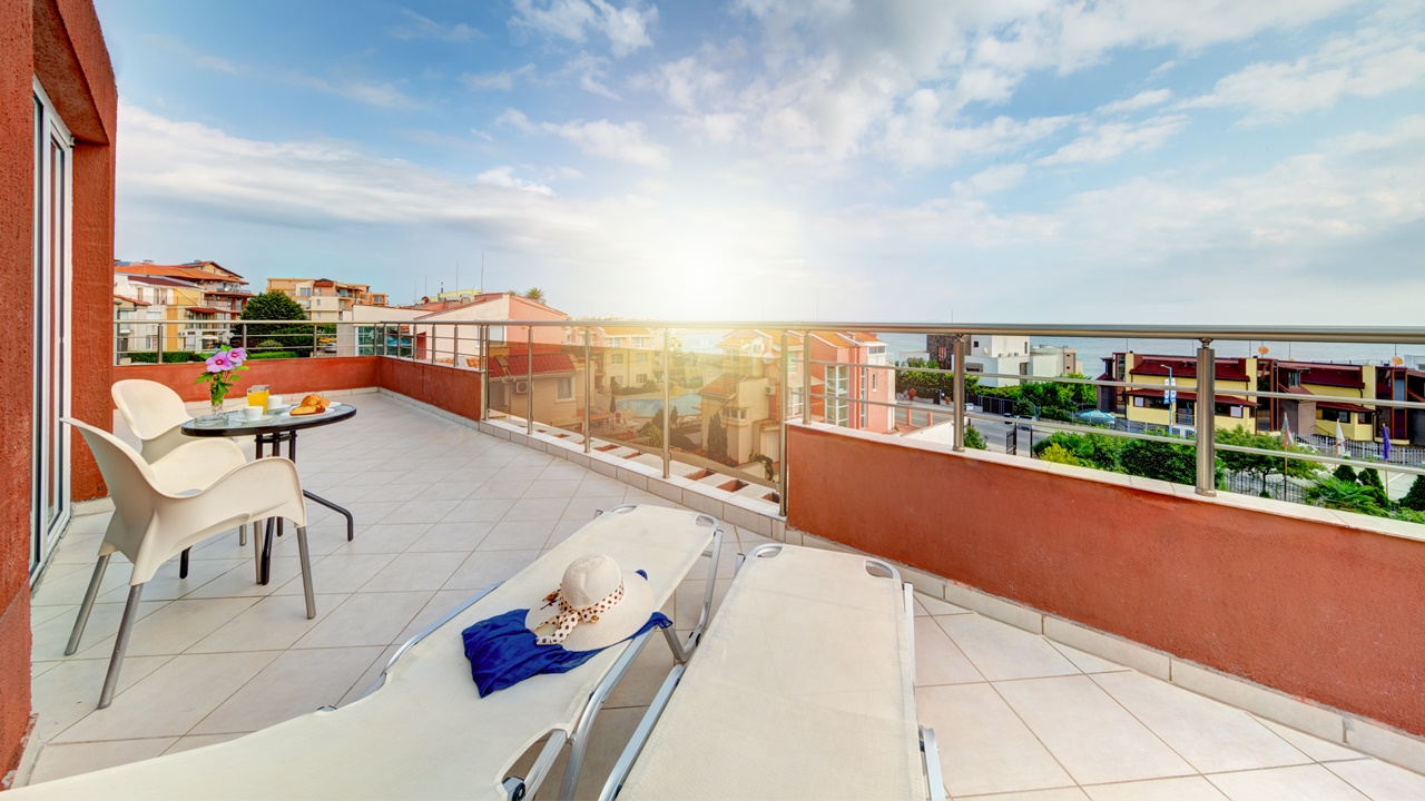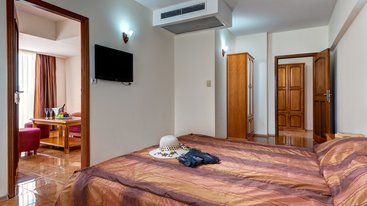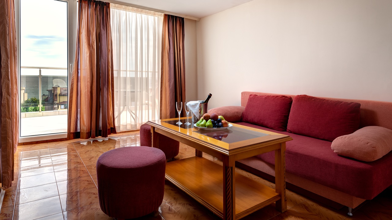 - Апартаменти - състои се от две отделни помещения - хол с разтегателен двоен удобен диван и спалня, голяма баня с вана и душ кабина, огромна тераса (50 кв.м.) с изглед към морето