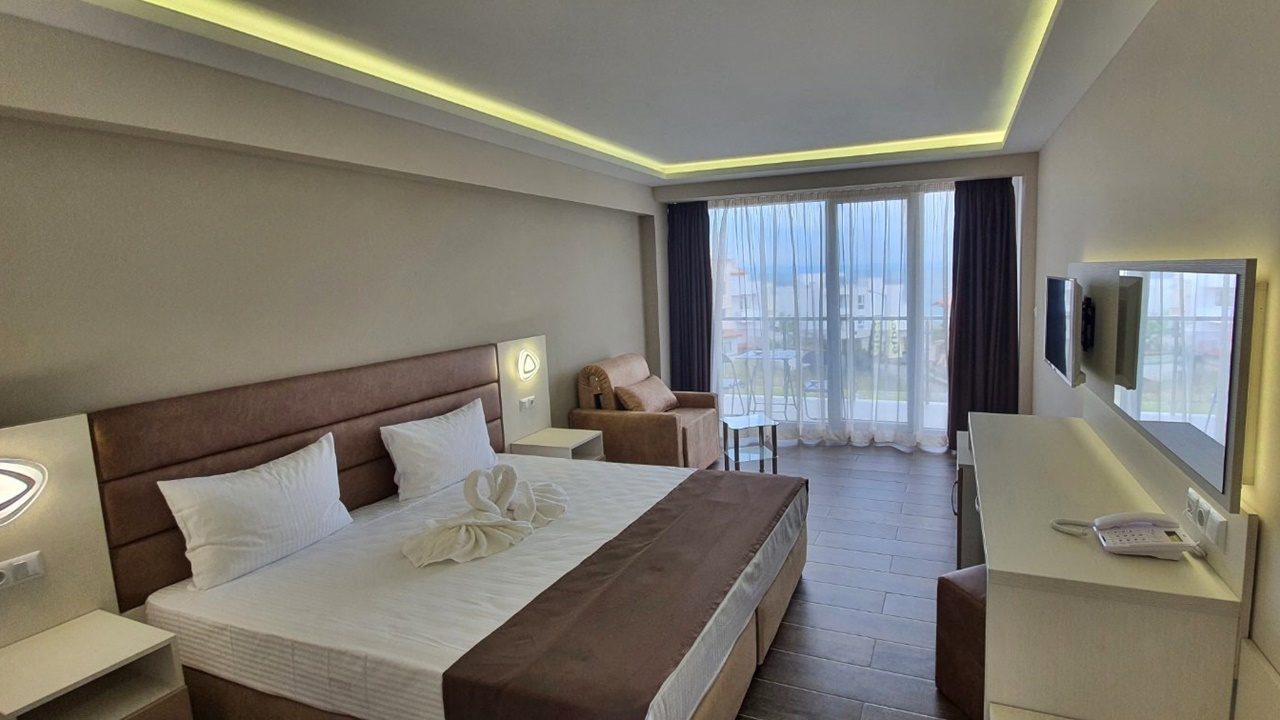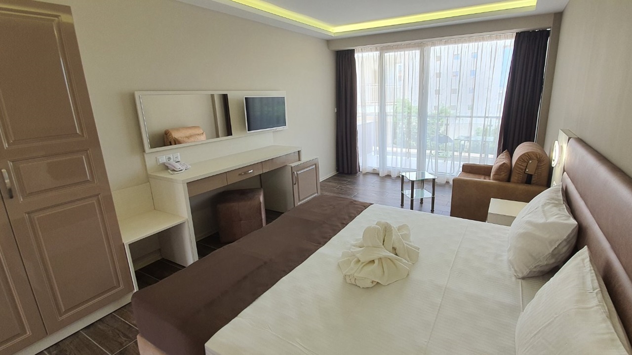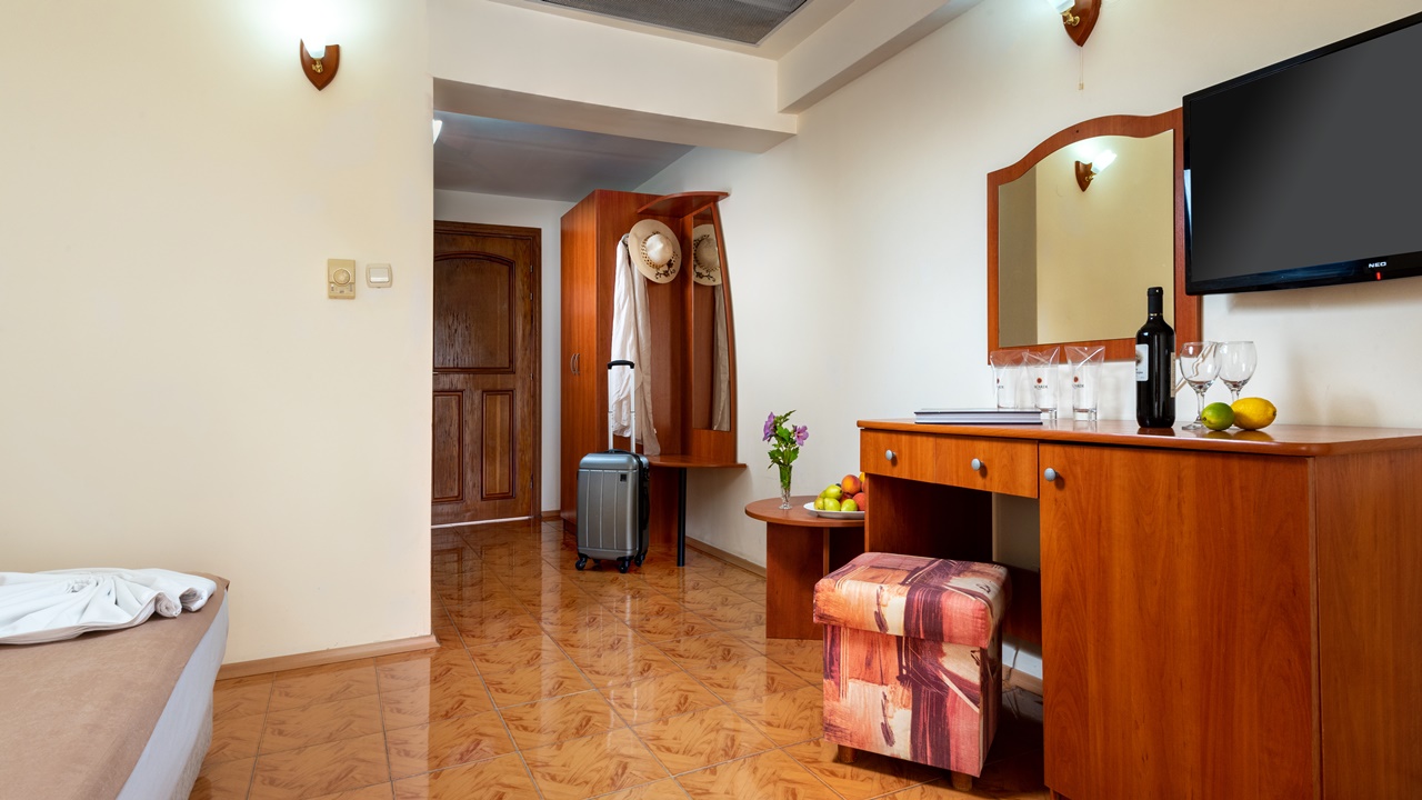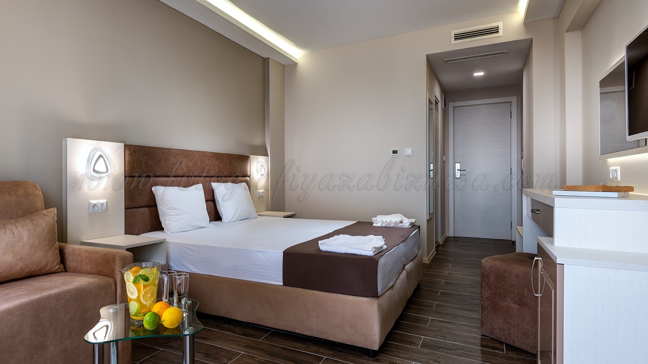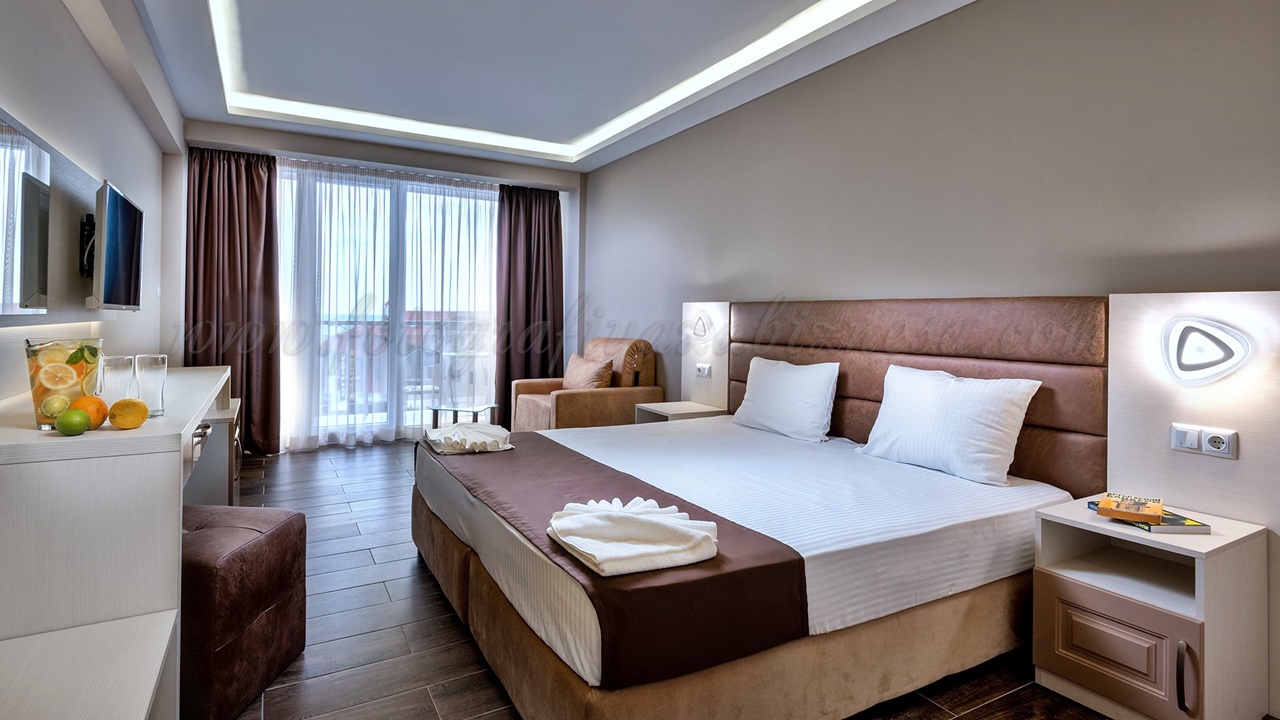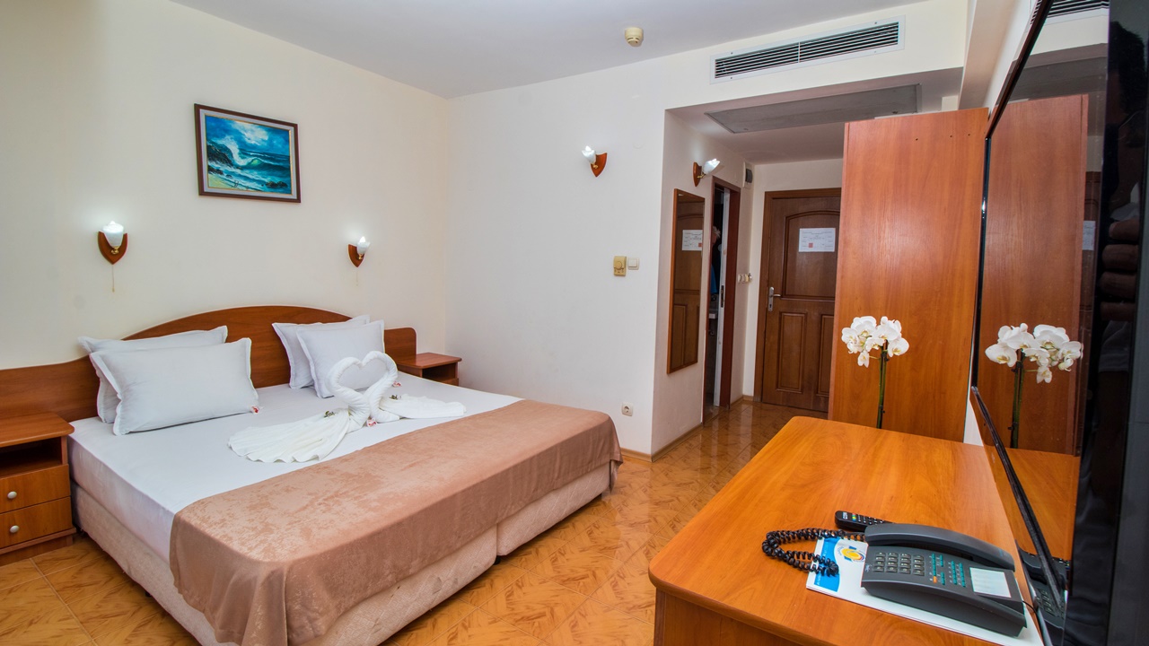 - Двойните стаи лукс и лукс с изглед море са обзаведени със спалня или две отделни легла и са изцяло реновирани. В повечето от тях има разтегателен фотьойл за възрастен или дете. Луксозните стаи са с по-голяма квадратура около 30 m2 и самото обзавеждане е по-модерно. Стаите разполагат с тераси, сешоар, LED телевизор, цифрова и кабелна телевизия, безжичен интернет достъп, телефон с директно набиране, климатизация с контрол в стаята, мини бар (хладилник), всички бани са с душ кабини
